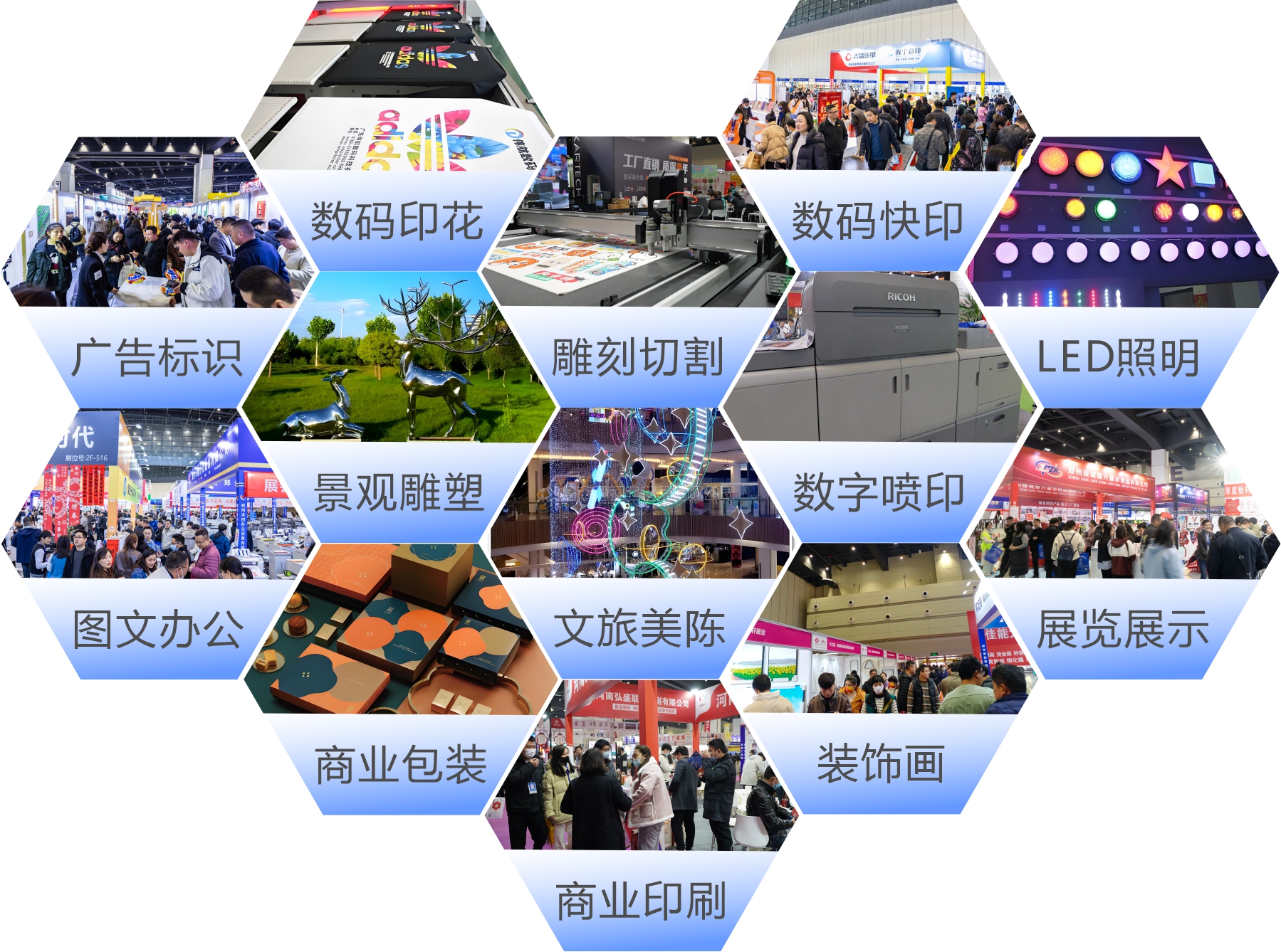展會(huì )展品范圍涵蓋了廣告標識、LED照明、噴印、印花、雕刻切割、圖文辦公、商業(yè)印刷與包裝、數碼快印、影像、裝飾畫(huà)與框業(yè),為眾多品牌進(jìn)入河南及中北部市場(chǎng)提供了機遇,更為河南及中北部市場(chǎng)帶來(lái)了全球采購的絕佳平臺。